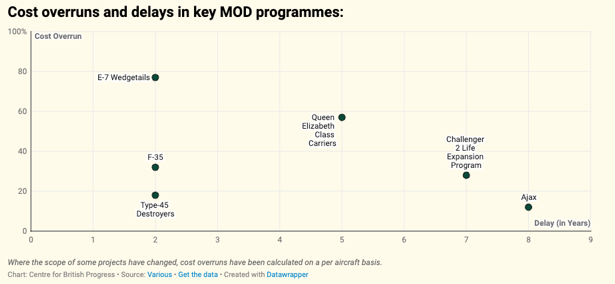 Recent legislative changes have done little to resolve these structural issues. While the Procurement Act 2023 introduced defence-specific exemptions and accelerated procedures, it stopped short of a comprehensive overhaul of a system long criticised for bureaucratic complexity and persistent delivery failures. Cost overruns, driven by in-year savings requirements and the repeated re-profiling of major projects, have imposed significant financial strain on the defence budget. Delays to submarine programmes, alongside the failure to procure replacement frigates in a timely manner, have resulted in substantial additional expenditure, including costly life-extension programmes for ageing platforms. These are not isolated incidents; ongoing technical issues with platforms such as HMS Queen Elizabeth further illustrate a pattern of inefficiency embedded within the system. Figure 1 further illustrates the pattern of delivery failures.